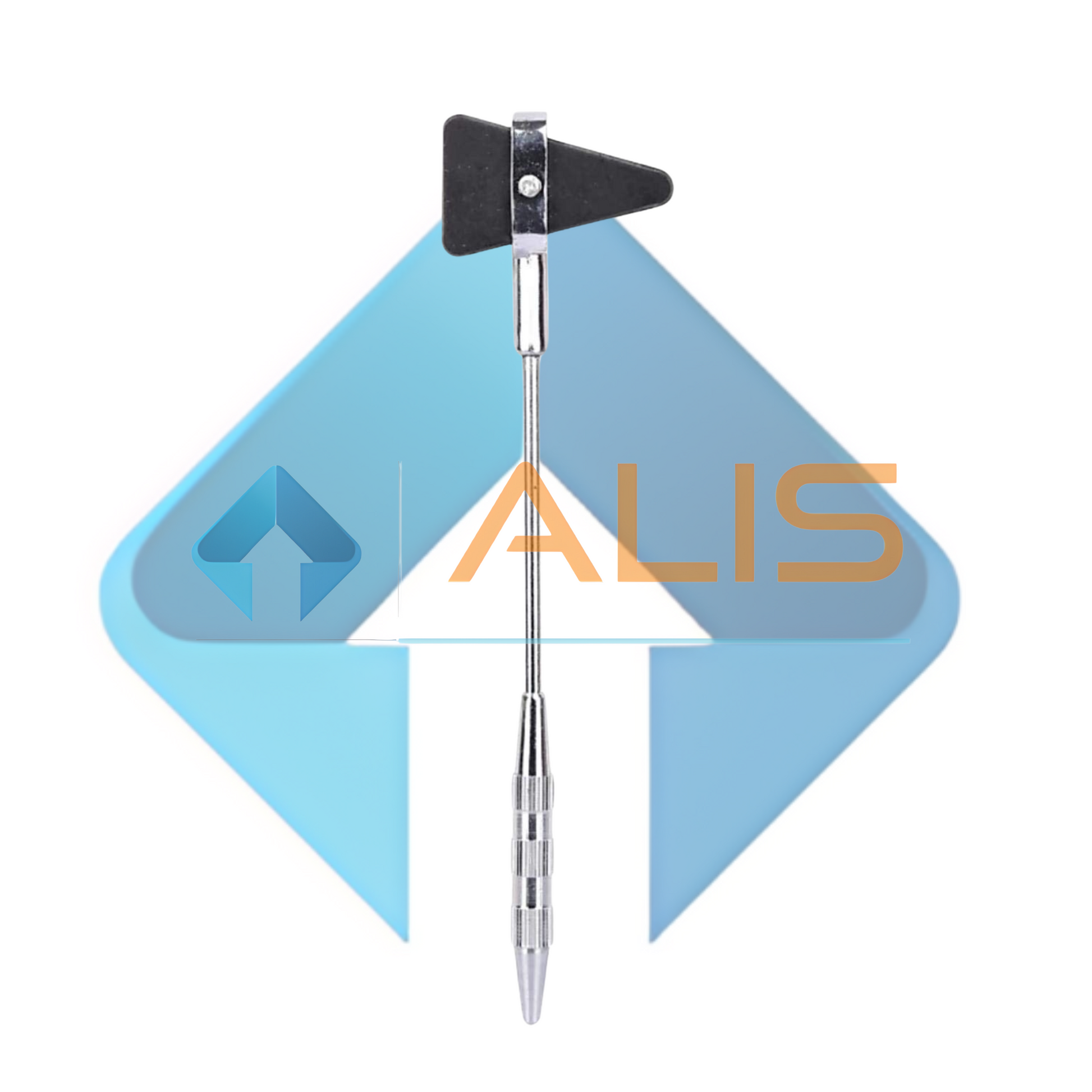 The weighted, chrome-plated handle is precisely balanced for better control of impact force. Full-perimeter grip tape with pin securely holds the triangular head halfway between the tip and base. The handle also features a pointed tip and brush to elicit cutaneous and plantar reflexes. The triangular thermoplastic rubber head features a beveled tip and base to elicit myotonic reflexes.